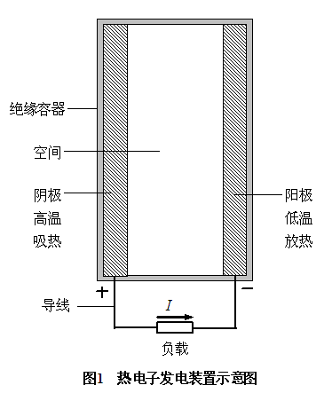 熱電子發(fā)電裝置的基本構(gòu)造如圖1所示,說明如下:
