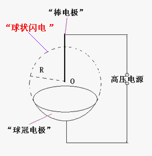 我們認(rèn)為:“棒電極”在球心O對(duì)“球冠電極”放電,可以產(chǎn)生“球狀閃電”。 [3][4]