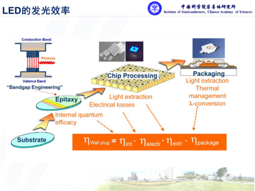 氮化鎵是直接帶隙的半導(dǎo)體材料,在光電應(yīng)用方面具有獨(dú)特優(yōu)勢?;诘壍腍B-LED對于通用照明來說,其核心問題是發(fā)光效率。其中外量子效率主要取決于三個(gè)層面的因素,內(nèi)量子效率、光提取效率,還有封裝方面的熒光轉(zhuǎn)化等效率,而且每個(gè)環(huán)節(jié)都息息相關(guān)。